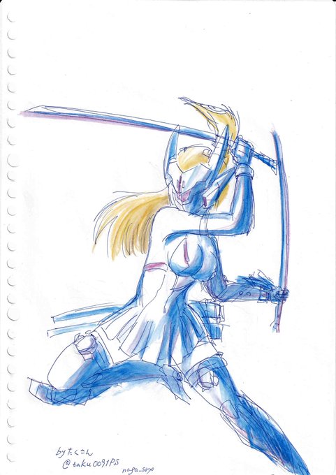ながさん(@naga_srx) に刀華ちゃんを描いていただきました!! 可動範囲が狭い刀華ちゃんがめちゃくちゃカッコイイポーズとってる…😭 ながさん本当にありがとうございました!!