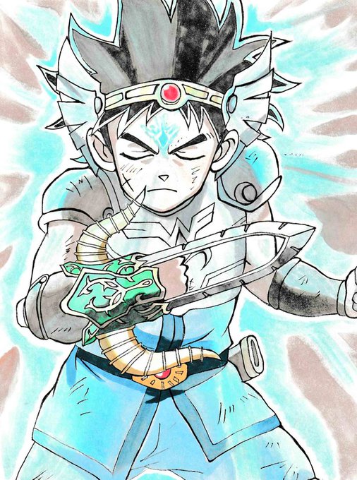 ダイくん完成!! 実際よりも色を少しあっさりめにして、アバンのしるしをキラッとさせてみました~!! #模写 #イラスト #ドラゴンクエスト #ダイの大冒険 #ダイ