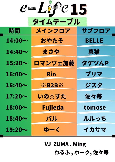 タイムテーブル公開!良い時間を頂いたので期待に応えられる様プレイしてくぞい👊
