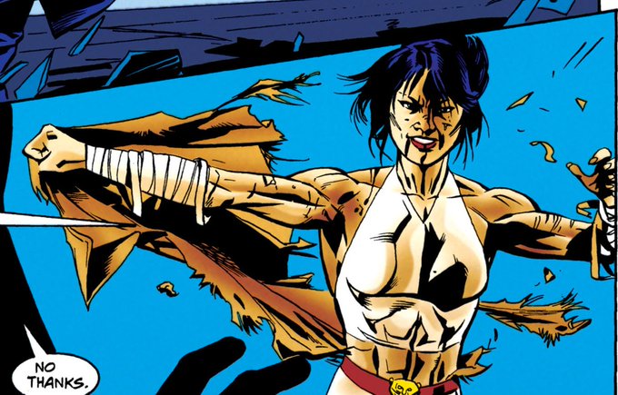 Since @drawin_casscain showed off some of their Revengeance-tastic Cyborg Cass, here's their concept for a Future Lady Shiva. The idea being that she's not only managed to survive to old age, but she somehow remains just as agile and deadly as ever. If not more.