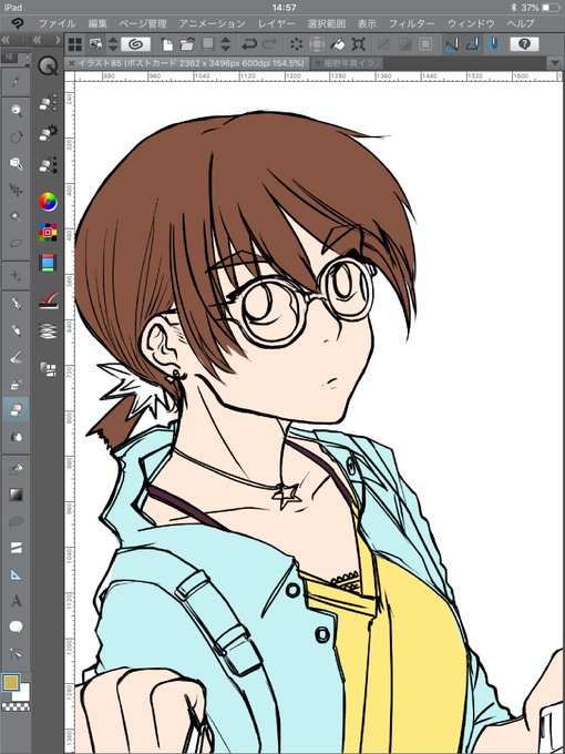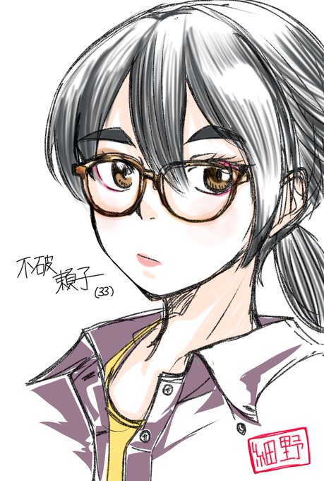 らくがき。うちのこの頼子さん。久しぶりに色もちょっとつけてあげられた。かわいいだろ。