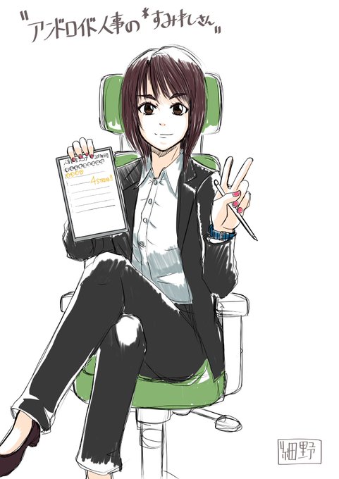 「アンドロイド人事の*すみれさん」案。アンドロイド的記号がないとやっぱりただの人事のヒトになっちゃうかなぁ。趣味は人事のキルマークを記す事。