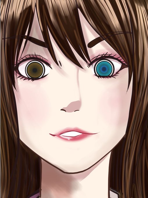 めっちゃ細部がつぶれてしまったので、仕上げ前ファイルの顔アップです。目はこんな感じです。