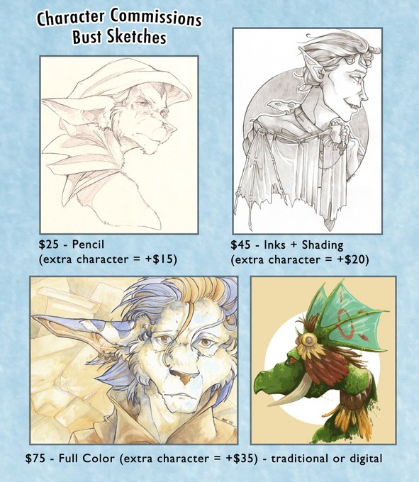 Some samples of previous commissions below. There are more on my website above, and lots of examples of my art on my DeviantArt account - https://t.co/FGUW1pM4BC