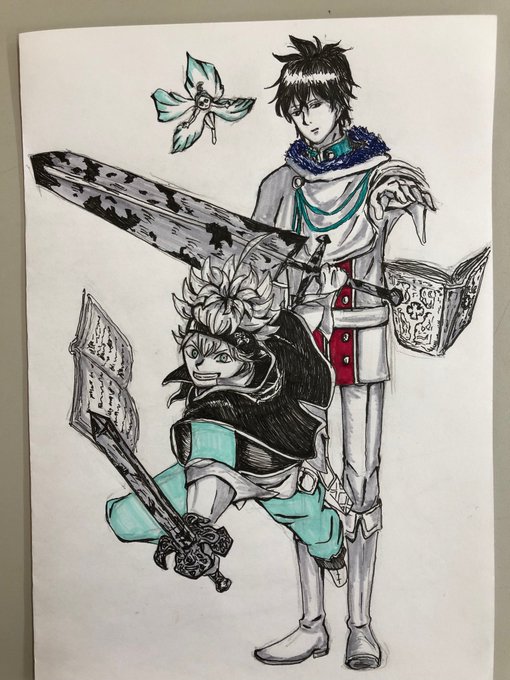 ブラッククローバー はじめてかいた…。ユノもフィンラルも髪型がおかしい(泣