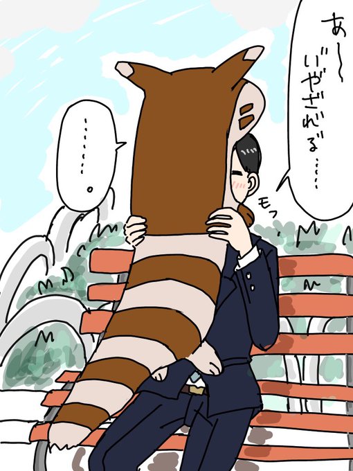 仕事の昼休みになかもずモフモフして癒されてる所描きました。