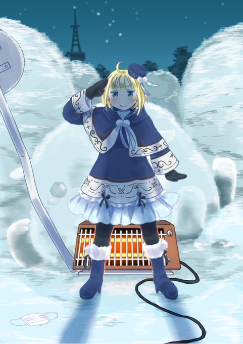 冬服のイラストを諸本めおとさん()が描いてくれました。北国!除雪路用看板!感謝!