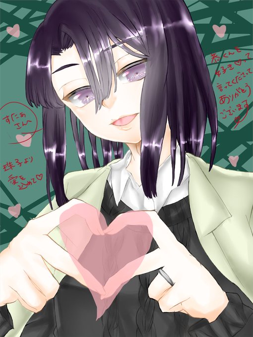 @reira_starlight え~? 俺のことが大好きなの? ありがとう。最近こういうの?が流行ってるのかな? ファンサービス……って言うんだっけ? ハートマークだよ! 上手に出来てる? ……あ。……でもこれ(ハートマーク)は克也くんにあげるから、君には後でピースをあげるね。お仕事頑張ってて偉いね。