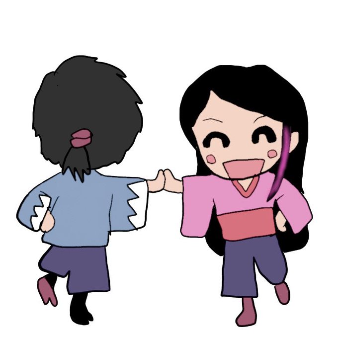 #空を染める 双子が仲良くスキップしている gifアニメーション。
