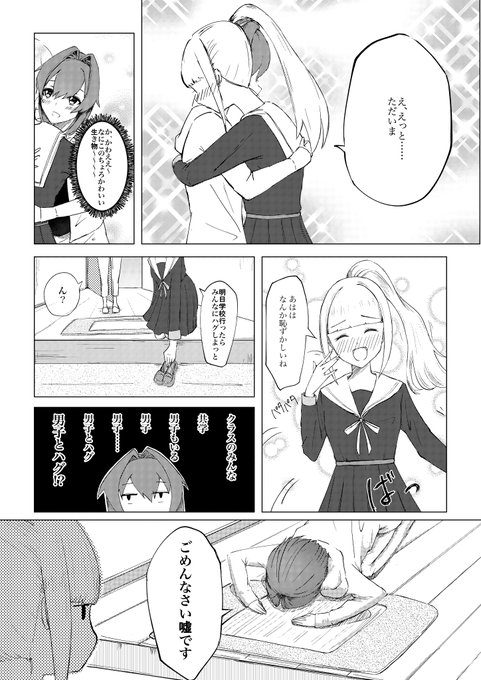 「日本の文化で挨拶の時はハグをしなきゃいけないんだよ」 #ヘル絵スタ #絵ンジュ