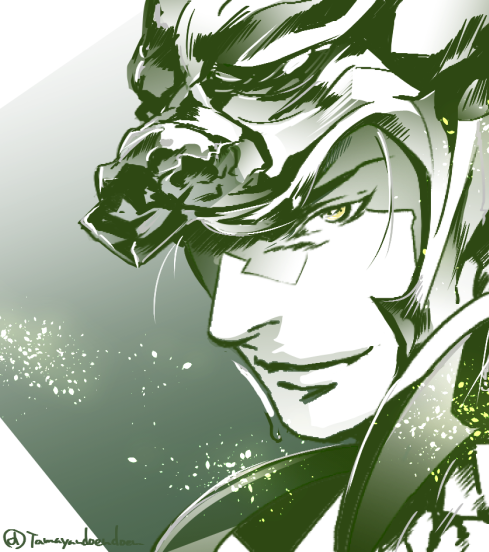 チョキは前に描いたこれ(解けかけてるけど) 騎乗して武器構えてようがやってる印象ある そのとき手綱は多分銜えてる、なんて???ってなるけどかっこいいは正義なのだ