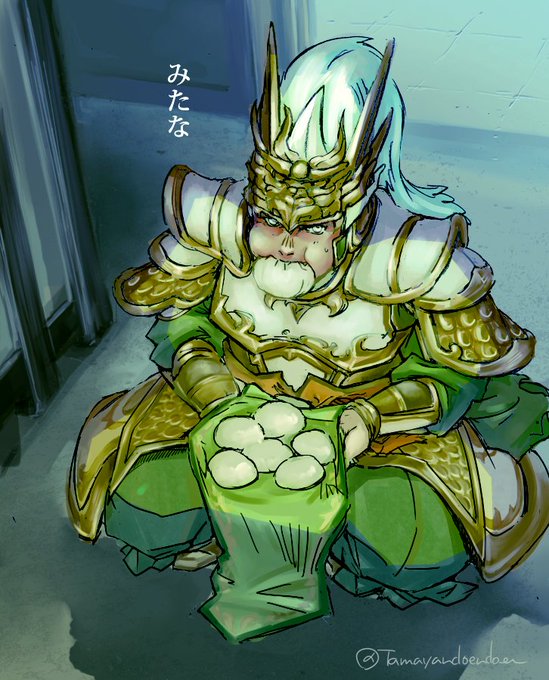 夏休みのアイコンはなつかしのあちあち馬若 描いた当時(2019)兜の下は巾で包んでいるのがわたしの中でブームだった 今もわりとそう