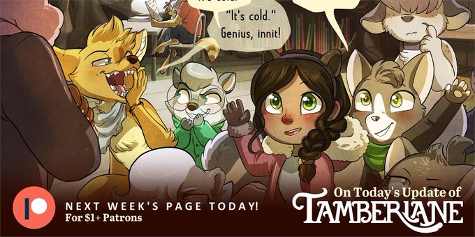 Welcome Back, Tamberlane! Chapter 4 is up and ready for Patrons to read on Patreon! You get to read it a week earlier than everyone else, too! https://t.co/qJsFhBpv44 #webcomic #indiecomic #Patreon #cute #animals #art #fantasy #TamberlaneComic
