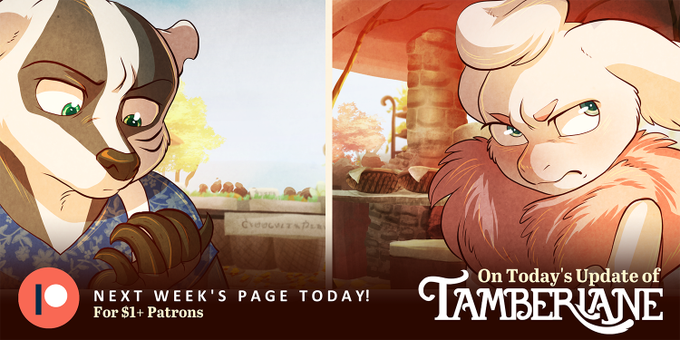 Last reminder, Patrons! Don't forget to catch up to Page 168 of Tamberlane on Patreon! New pages post on Wednesday! https://t.co/IcjYcUW2zO #webcomic #indiecomic #art #animals #cute #illustration #fantasy #furry #TamberlaneComic