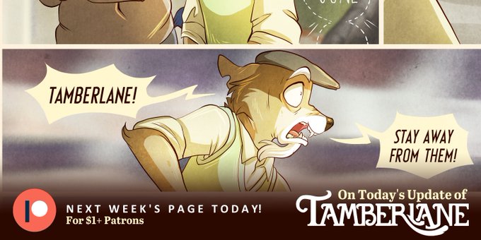 Good Afternoon Tamberlane Patrons!!! If you haven't taken a peek, Page 159 is up on Patreon!! Remember, we are on break next week, so you'll have plenty of time to catch up!! https://t.co/4CUGdj7tip #webcomic #indiecomic #art #animals #cute #illustration #furry #fantasy