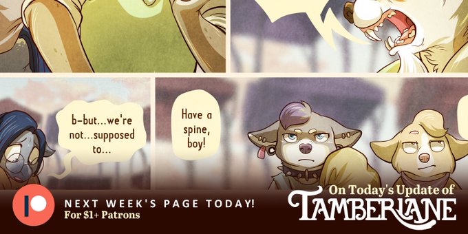 Good Morning Patrons!!! Did you remember to catch up to page 159 of Tamberlane? Go give it a peek, if you haven't already! :D https://t.co/xwVnBgqHKG #webcomic #fantasy #animals #cute #illustration #art #TamberlaneComic