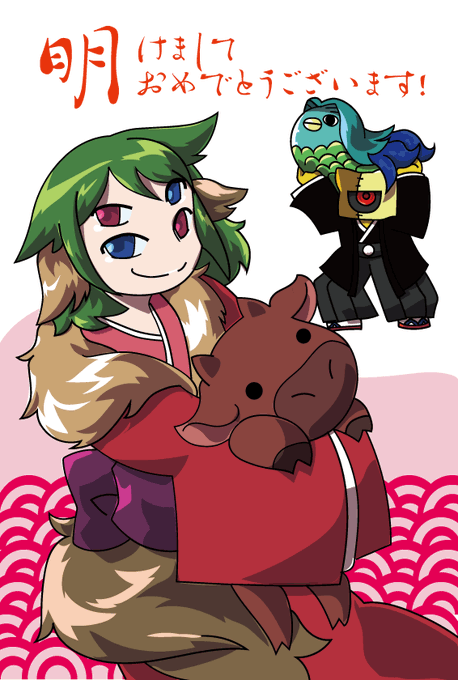 いまさらですが年賀状の絵を投げておきますね(よそのこ)