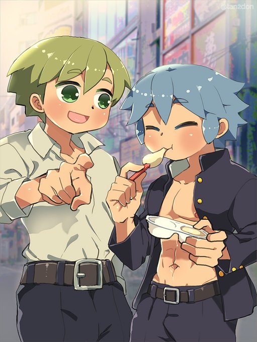 創作っこの雪見だいふくもぐもぐ 掛「うめー」 陸「1個くれよ」