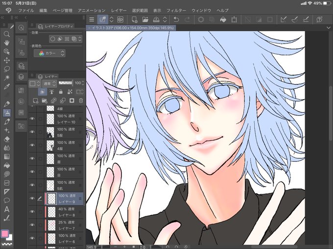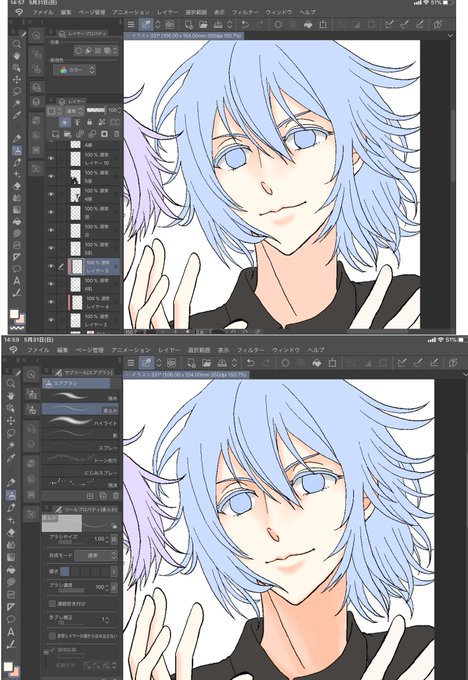 1枚目→下塗り(髪は髪線レイヤーの直下のレイヤーで塗る)10分くらい