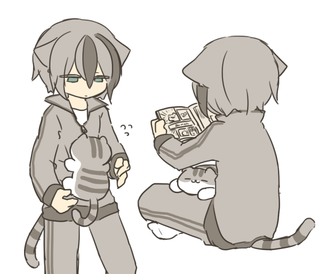 (ねこ擬人化)さばの日!ということでリクエストより「擬人化さばとらさんに甘える原型しろさばさん」!