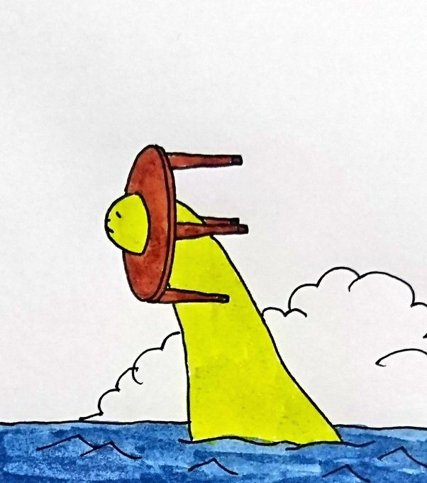 海中では顔の周りにあるちゃぶ台のようなものを回転させて泳ぐのではないかといわれている。