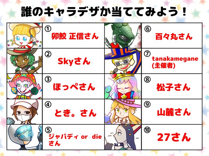 主催含め参加者10名分のイラストが完成しましたので公開します!