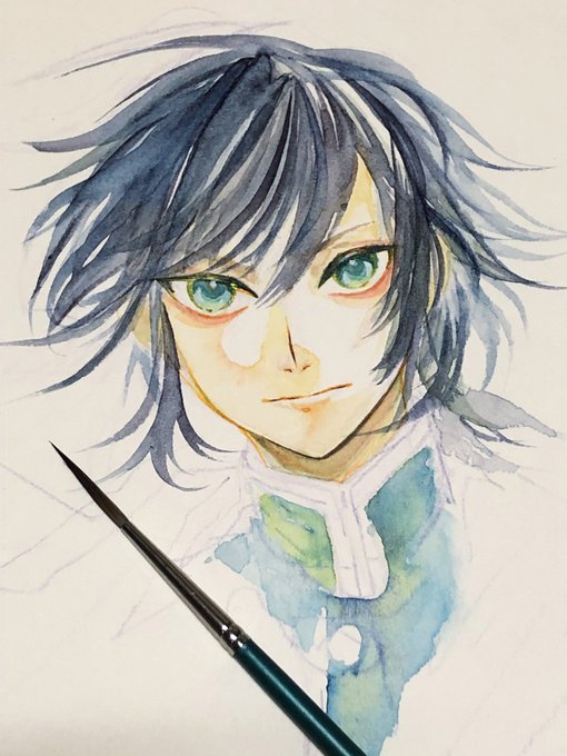 今、義勇さんの髪の毛ちょこちょこと塗ってる所なのですけど、一色でいろんな表情を出す絵具になりました。これはヤバイ、絵の具作りも描くのも楽しい!