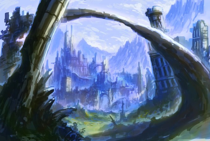 #背景ワンドロ #背景 ワンドロ1時間。廃墟系ばかり描いてる気がする… 新しいブラシの使い方が慣れて気がしてきた