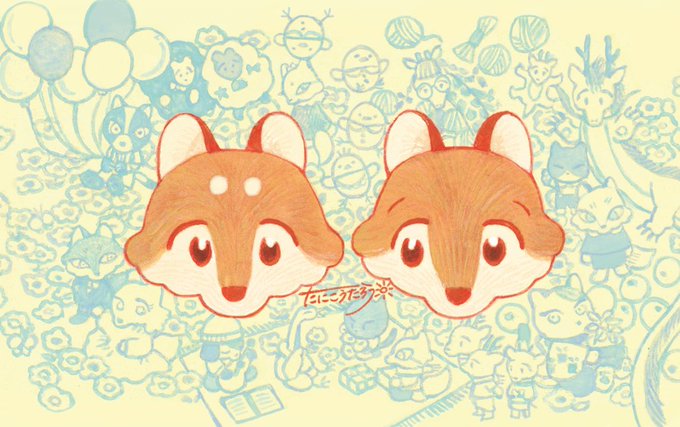 きつねのまろまゆとたれまゆというキャラクターと動物たちを描いています!