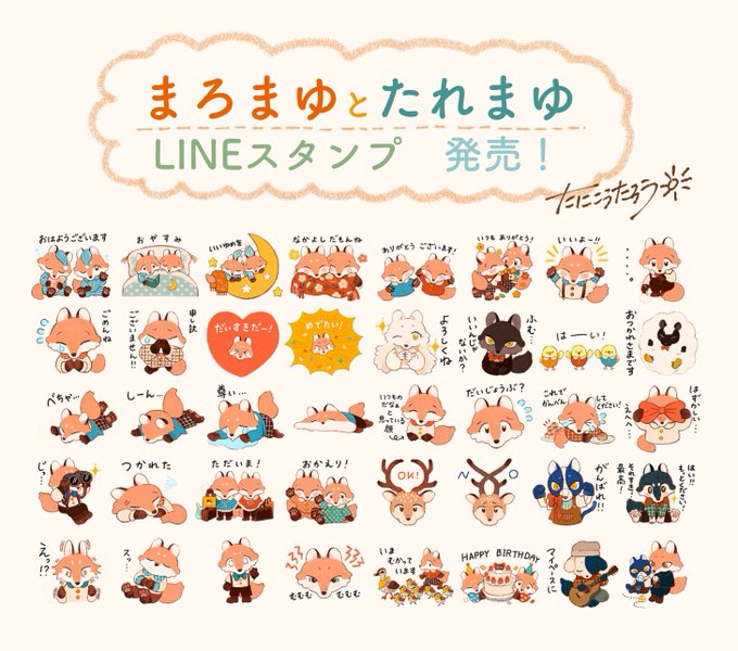 【🦊お知らせ🦊】 お待たせいたしました! #まろまゆとたれまゆ の LINEスタンプが発売されました🎉 毎日使えるスタンプ…になってるはずです!絵本や絵で登場した動物たちもいます! よろしくお願いいたします! 販売ページ↓ https://t.co/bGaBRhyVqU