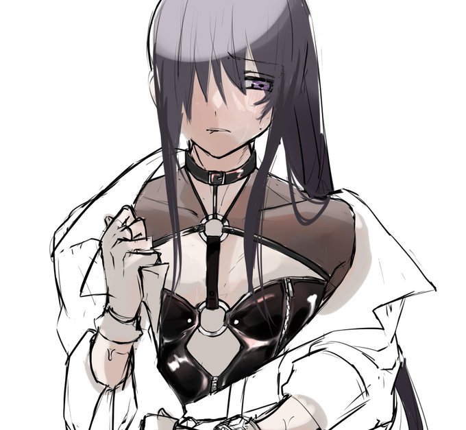 普段見えてる腕の部分もボンテージが見えるようにしたくて加筆した、、、