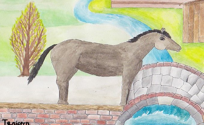 題:小川と馬