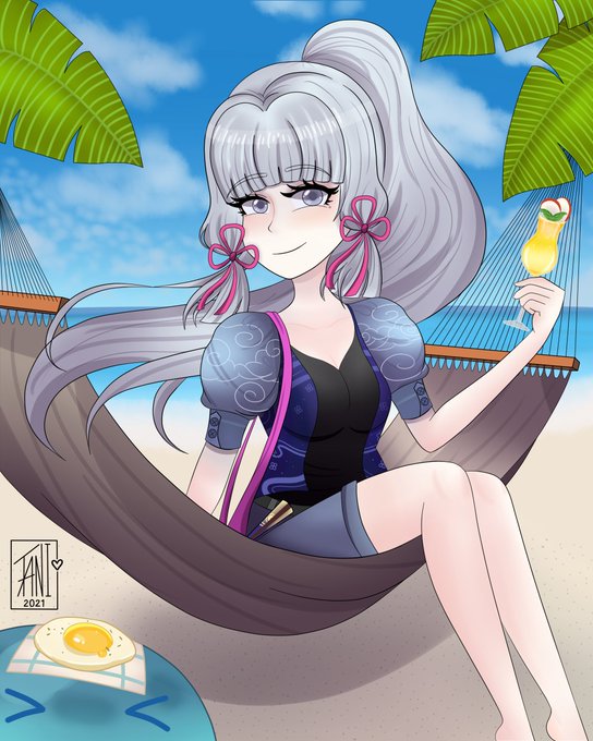 Dibujo de Kamisato Ayaka, un personaje de Genshin Impact para el concurso de Sabores Veraniegos que organizó miHoYo.