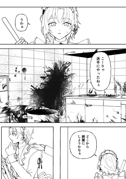 メイドさんと新布さんの漫画(1/2) ⚠️不穏です(面識はない設定) #くろのあとりえ