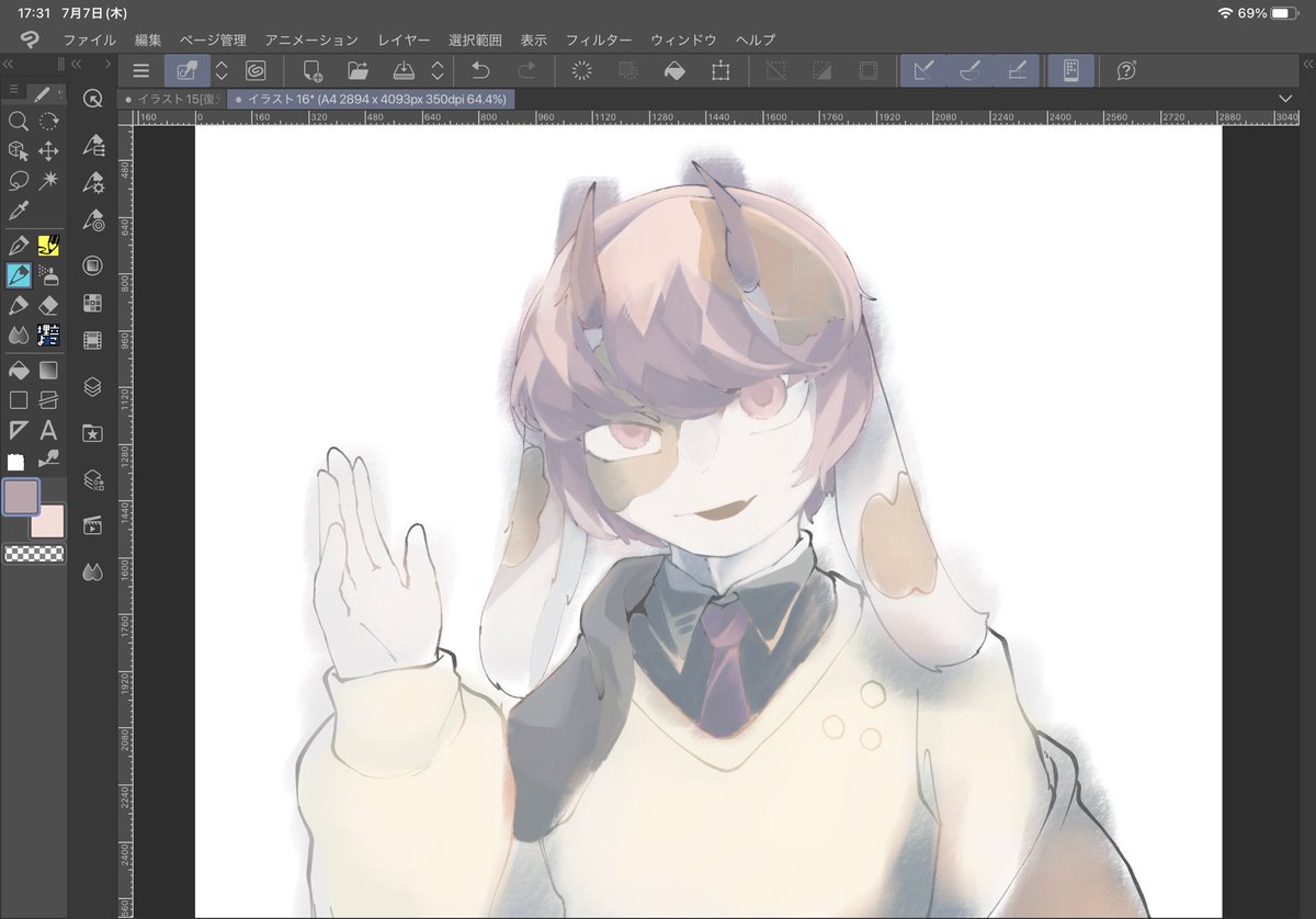@sousakuTL カラーリング模索。衣服はもう直前まで悶々とするつもりです、ウウン #くくばく_キャラ練り