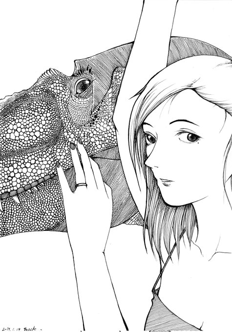 日本画と言えるかはともかく、こんな感じのイラストは前に描いた事あるんよ( ´-ω-)ノ