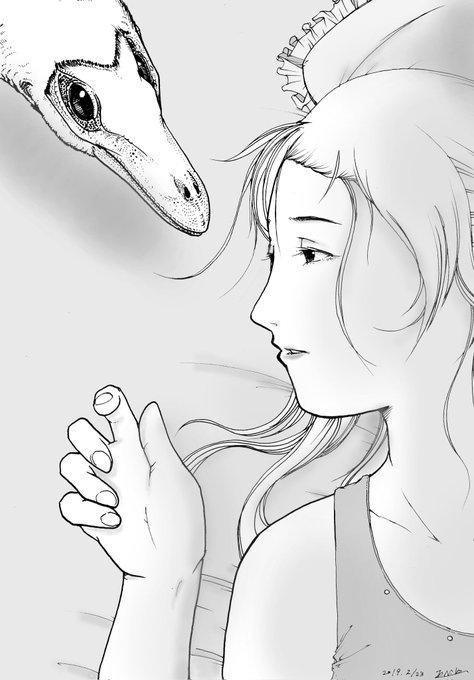 ガルディミムス頭部復元。 あいにくの雨で頭痛が強くなってきてるけど日本画恐竜展には行く( ´-ω-)
