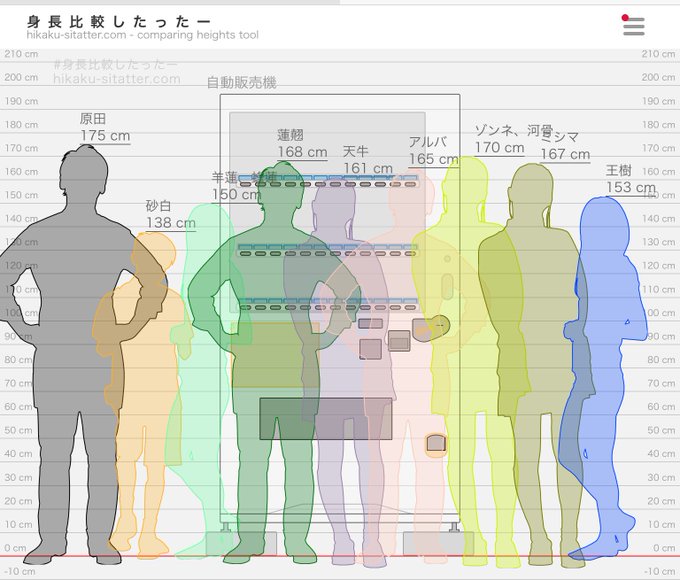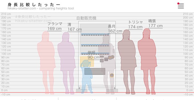 自キャラ身長比較 あんまり高低差ないとこには基準として原田(175cm)入れてます