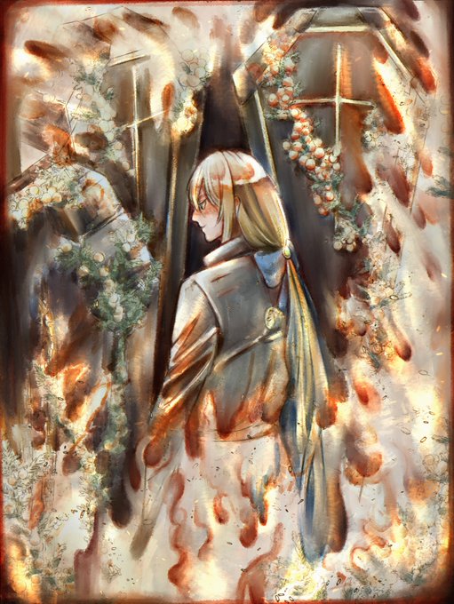 下書き→下塗り→色調整(アプリ)→ここで一個に統一して書き込む→上から発光レイヤーで燃やす→書き込む→色調整→加工→完成(4枚目は最終加工の前)