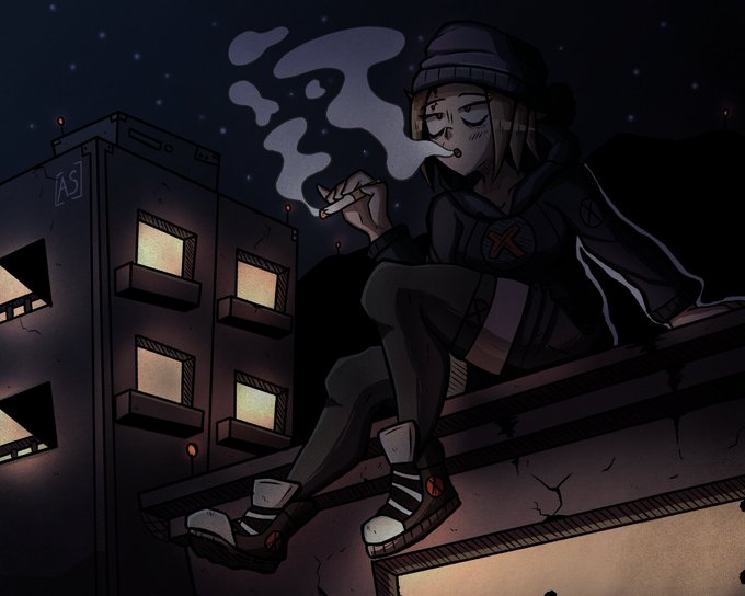 Redrew an old drawing from last year of my oc Evelyn chilling on top of build smoking #drawing #art #vibe #redraw #oc