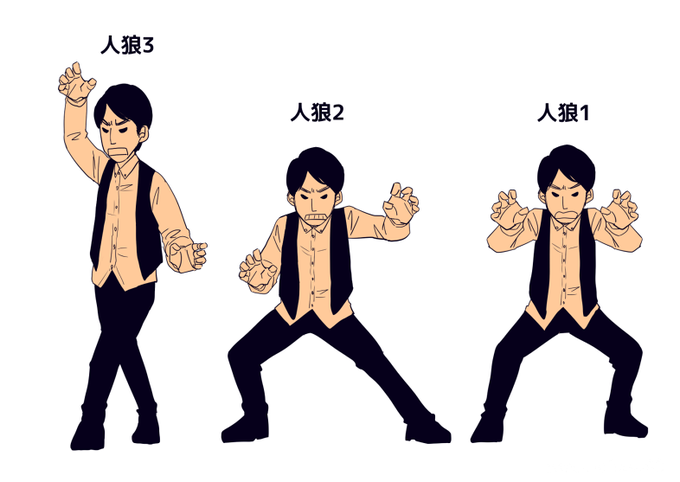 7ステ前説、ゴーシュさんがナナさんの「人狼1!」「人狼2!」に合わせてポーズするのとかとても楽しかった!ポーズうろ覚えだけど、人狼3だけ屈んでなかったのは覚えてる