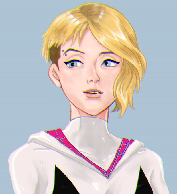 グウェンリベンジ、ついポーズを描きたくなるけどすぐ積むので諦めてまずは顔から描く。