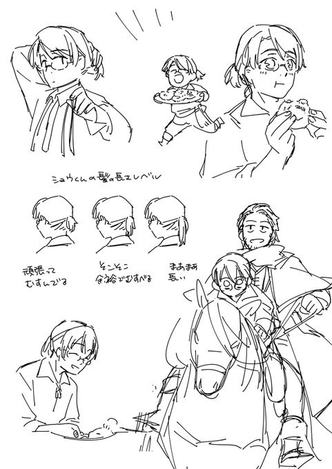 越田うめ先生から「皇帝陛下とお毒見役の異世界漫遊グルメ旅」のショウくんとナラモアのラフイラストを頂いた!!!