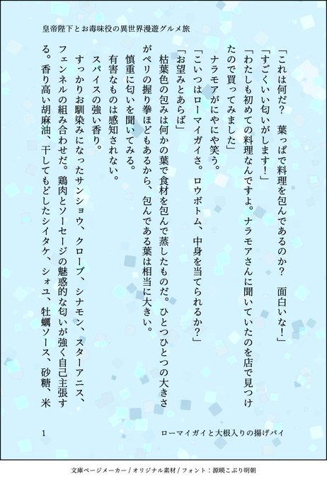 皇帝陛下とお毒味役の異世界漫遊グルメ旅、WEB小説ウィングスで連載中です。1話と最新話が無料で読めます