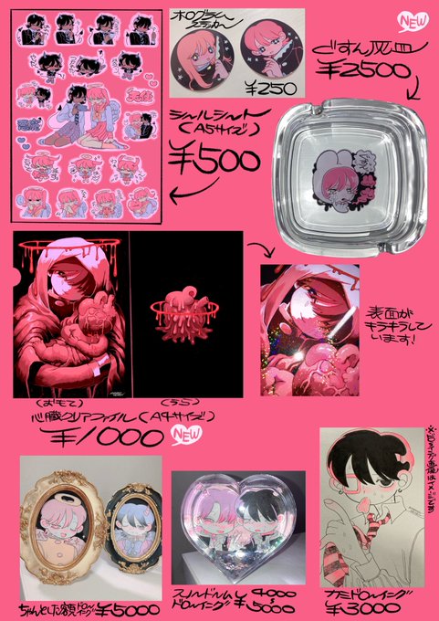 Tシャツ、漫画画集、シール、アクスタ、クリアファイル、灰皿、ガチャガチャなどたくさん豪華な新作あります〜✝️