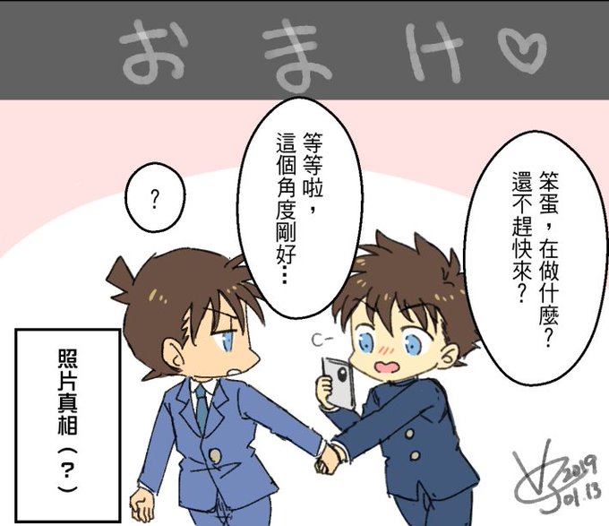 新快OTP30題 - 03 『玩遊戲/看電影』 P1 新一「那個站在女主角後面的青梅竹馬就是真兇,而他的犯案手法就是利用密室的氣密窗……」 快斗「!?!?!」 P2 新一「……然後真兇就把鋼琴線架在窗邊的空——唔」 快斗「給我閉嘴啊啊啊啊啊」(都被你劇透了我看什麼啊啊啊) 小黑們 oO(這兩人好吵…)