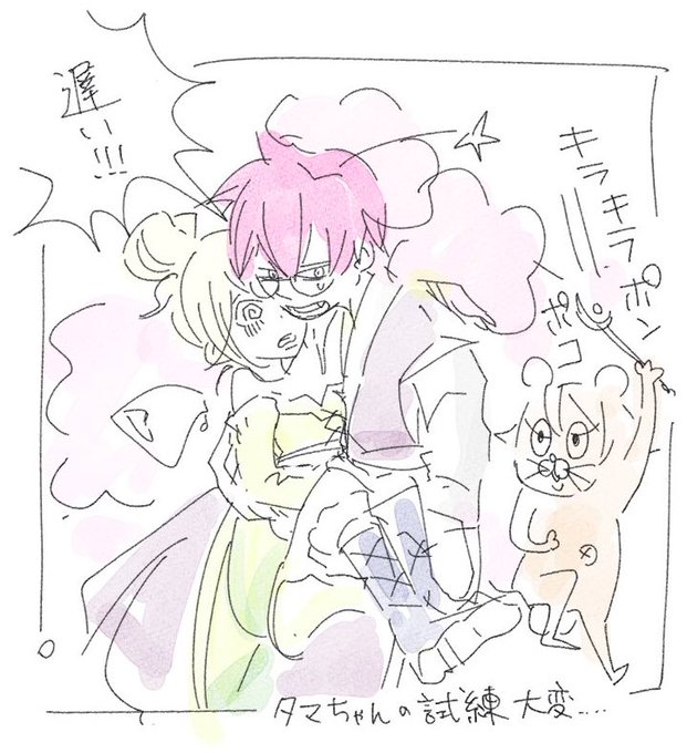 絵を描く前にタマちゃん試練行くかってしたら耐性なんもないからめっちゃ魅了とか即死とかもうすぐ死ぬし、サポのたぬきがキラキラポンもう終わるって頃つけるんだもんなーーー!