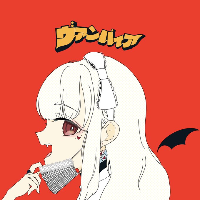 りあちゃんDS5周年お祝いのアルバムの挿絵を描かせていただきました!りあっちイメージと歌ってみたのヴァンパイアパロディです🎮🦇
