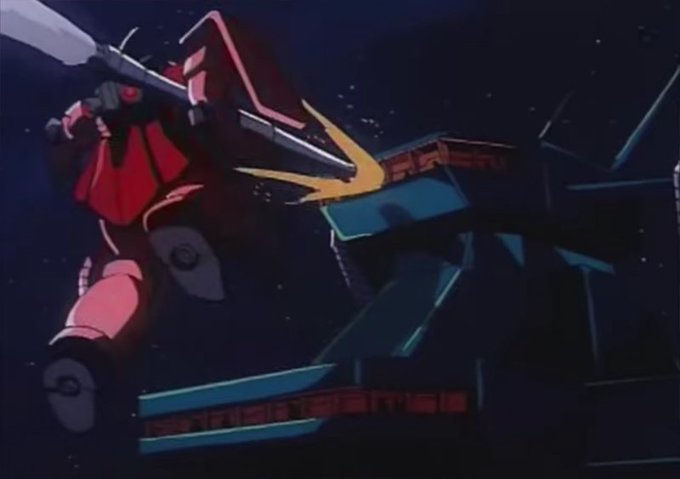 戦艦のブリッジをモノアイがギロリと覗き込んで、直後に破壊っていうあるあるなワンシーンに見える(^_^;)