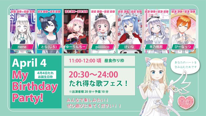 本日の歌フェス20:30-24:00 参加してくれる7名の皆様の4コマを描きました!間に合った!! 4コマでは伝えきれない魅力いっぱい✨ 是非聞きに来てくれると嬉しいです #REALITYイラスト部 #たれまくりおえかき